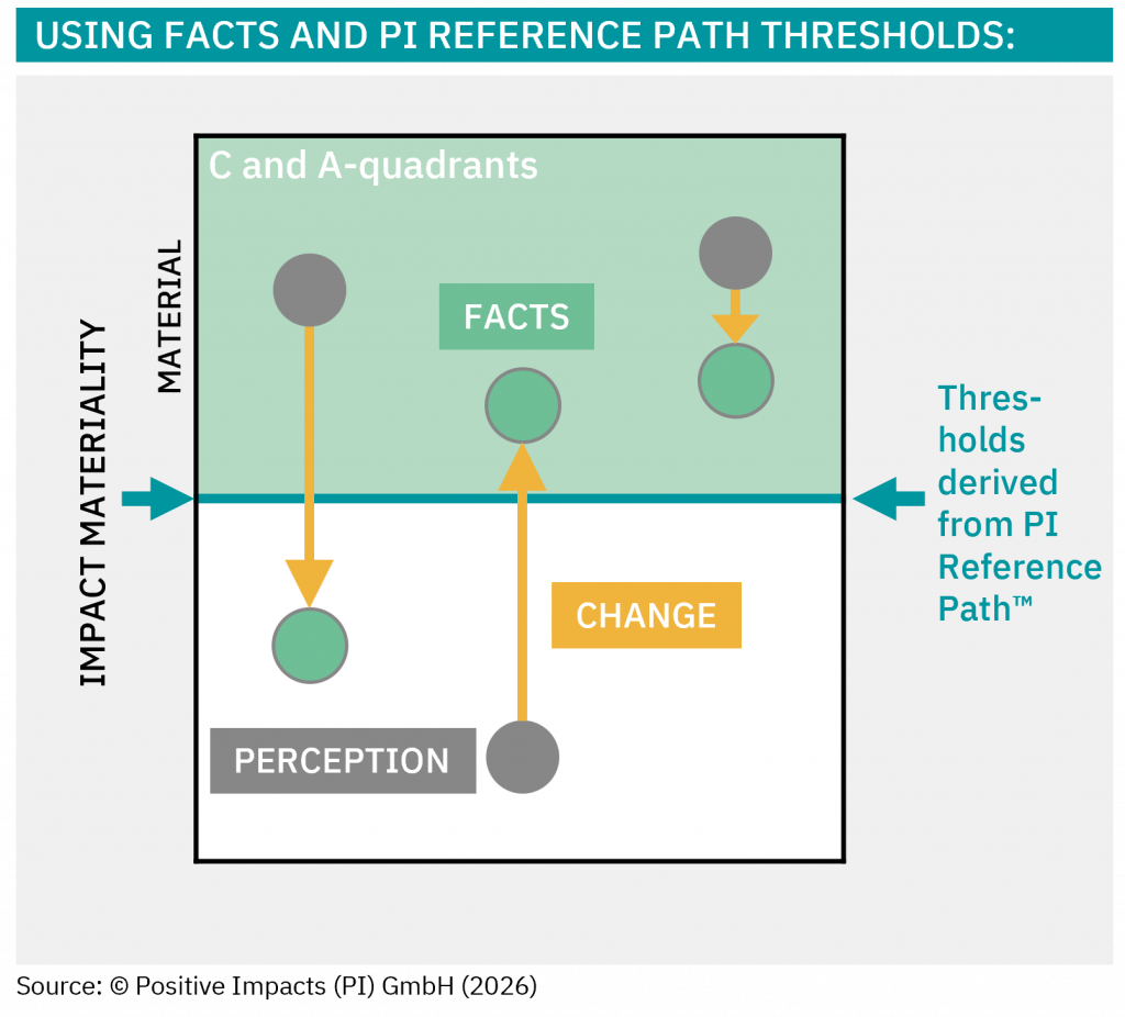 All impacts are first quantified — in absolute values, percentages, or Impact Points™ — and then translated into clear impact performance levels, making complex impact data understandable, actionable, and easy to benchmark.