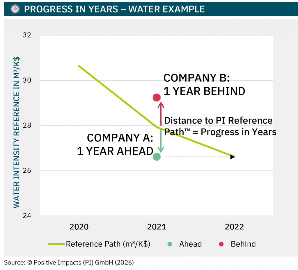 Progress in Years – how far current and future impacts are ahead or behind the reference path